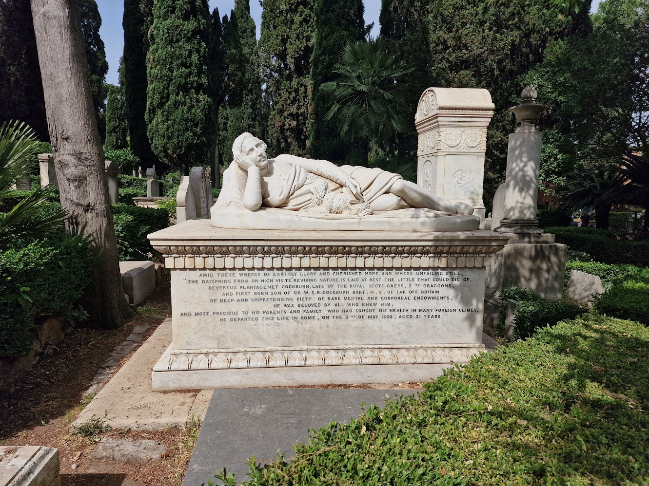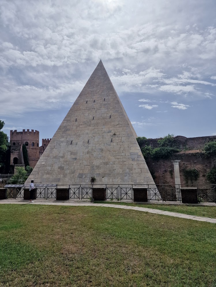 Den velstående praetoren Gaus Cestilus døde i 12 f. kr fikk bygget en flott pyramide som sitt gravkammer. Naboen til pyramiden er en kirkegård og siste hvilested for protestantiske mennesker fra 1700 tallet. Her kan vi se graven til blant annet John Keats og Percy B. Shelley. Deretter vandrer vi på ukjente og kjente steder.