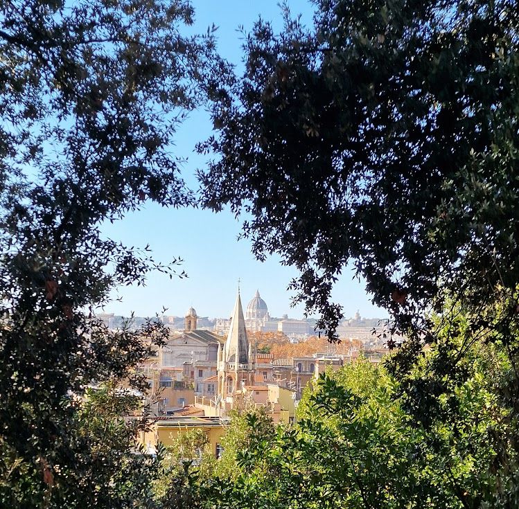 Gårdsrom, panorama, kunst, fontener, graffiti, barer, spisesteder, planter, katter, pratende romere og syngende fugler (og Romas papegøyer) opplever vi der vi vandrer mellom Romas høyder.